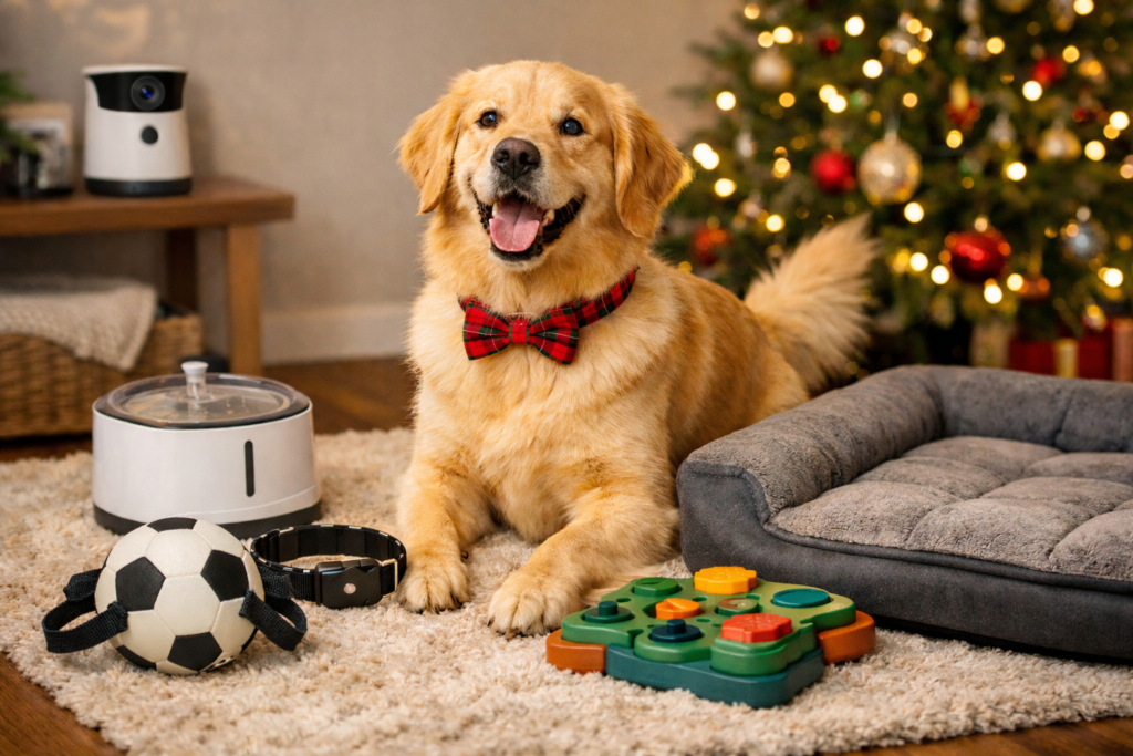 Finding the perfect Christmas gift for your dog can feel overwhelming — you want something that’s fun, practical, and sure to make their tail wag with excitement. This year, we’ve rounded up the best gifts that combine technology, comfort, and festive fun, so your furry friend can enjoy a holiday full of play, safety, and love. This post contains affiliate links. If you make a purchase through these links, I may earn a small commission at no extra cost to you. 1. Petcube Camera Why it’s great: Perfect for: Dog owners who want a reliable, interactive way to engage with their pets.Shop all Petcube cameras here 2. Petcube Water Fountain Why it’s great: Perfect for: Dogs who need encouragement to drink more water and stay healthy.Buy here 3. Petcube GPS Tracker Why it’s great: Perfect for: Active dogs who love to roam and explore.Buy here 4. EHEYCIGA Orthopedic Dog Bed Why it’s great: Perfect for: Dogs who love to relax, nap, or need extra joint support.Buy here 5. QDAN Dog Soccer Ball Why it’s great: Perfect for: Energetic dogs who love outdoor games and interaction with their owners.Buy here 6. PETSTA Dog Puzzle Toy Why it’s great: Perfect for: Pet owners who want their dogs to stay entertained, active, and mentally stimulated.Buy here 7. ADOGGYGO Christmas Dog Collar with Bow Why it’s great: Perfect for: Pet owners who want a fun, stylish accessory for their dog this holiday season.Buy here 8. Dog Christmas Outfit – Santa Hat & Collar with Bells Why it’s great: Perfect for: Pet owners who want their dog to join in the holiday festivities in style.Buy here 9. More Christmas Outfits Conclusion This holiday season, make your dog’s Christmas extra special with gifts that combine fun, practicality, and care. From interactive tech and mental stimulation toys to cozy beds and festive accessories, these picks are designed to keep your dog happy, healthy, and entertained all winter long. Don’t wait — check availability and prices today to ensure your furry friend has a tail-wagging Christmas!